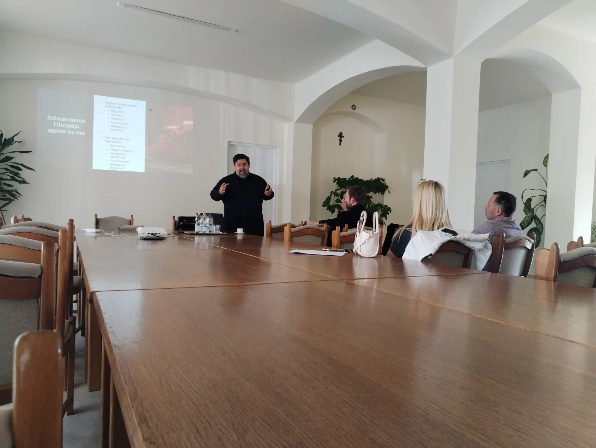 A program előadója dr. Nyirán János fődiakónus atya volt, aki szavaival és vetített képekkel segítette a résztvevőket abban, hogy mélyebb betekintést nyerjenek az Előszenteltek liturgiájának misztériumába és történetébe. Az előadás során szó esett arról is, miként alakult ez a szertartás az idők folyamán, és milyen szerepet tölt be napjainkban a hívek életében.